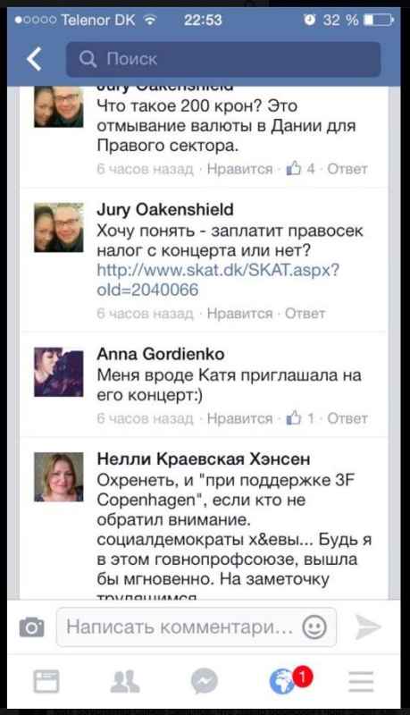 - Vertimas: „Kas yra 200 kr? Tai pinigų plovimas Danijoje, skirtas „Dešiniajam Sektoriui” /// „Pasiutimas, ir „Palaikant 3F Kopenhaga”. Jeigu kas neatkreipė dėmesio. Socialdemokratai ch*ovi… Būčiau aš toje šūdkasėje, išeičiau iškarto…